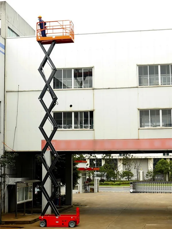 منصة عمل متحركة قابلة للرفع بحمولة 230\300 كجم، وارتفاع عمل يصل إلى 15,800 مم. تم تصميم هذه الرافعة لتكون فعالة وسهلة الاستخدام، حيث تعتمد على مشغل هيدروليكي ويوفر وظيفة الدفع الذاتي، مما يسمح للمشغلين بالقيام بحركة الارتفاع والحركة الأمامية والخلفية والتوجيه مباشرة من خلال المنصة، حتى أثناء غنجاز المهام على ارتفاع عالي. بالمقارنة مع الرافعات المقصية المتنقلة اليدوية، فإن ميزتها الأكبر هي أن العمال يمكنهم التحكم في حركة رافعة المقص أثناء وقوفهم على المنصة، مما يجعل العمليات أكثر ملاءمة بشكل كبير.