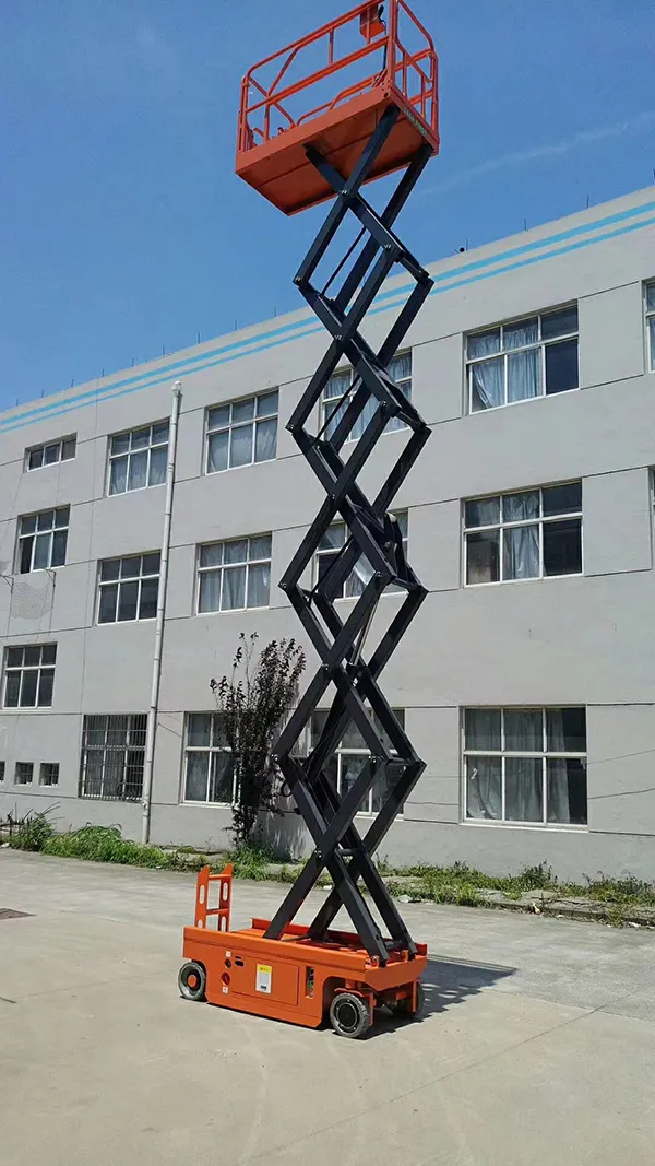 منصة عمل متحركة قابلة للرفع بسعة 300 كجم وارتفاع عمل يصل إلى 9100 مم