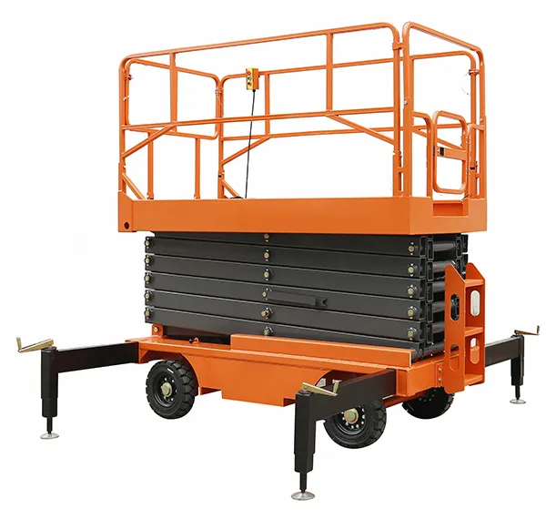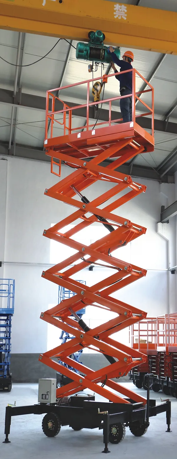 منصة عمل جوية صغيرة الحجم وقابلة للحركة مصممة لمهام الرفع الرأسي، تتكون الرافعة المقصية ذات الدفع من سبعة مكونات رئيسية: منصة رفع، أذرع رفع مقصية، أسطوانات رفع، نظام تحكم هيدروليكي، أذرع خارجية، إطار قاعدة، ونظام تشغيل. على عكس الرافعات ذاتية الدفع، يتم تحريك هذه الرافعات يدوياً إلى موضعها، مما يجعلها خفيفة الوزن ومناسبة للعمليات الداخلية والخارجية الصغيرة والمتوسطة الحجم. وهي معروفة بالموثوقية والاستقرار وسهولة الاستخدام، مما يجعلها مناسبة لمجموعة متنوعة من المهام عالية الارتفاع.