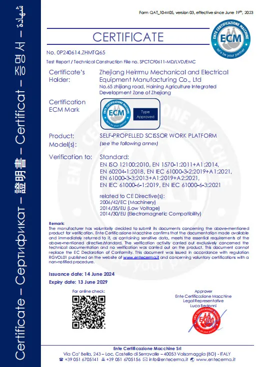لقد حصلت رافعاتنا الجوية ومعدات المستودعات لدينا على العديد من الشهادات الدولية، بما في ذلك ISO9001 وCCMA وCE، مما يدل على جودتها وموثوقيتها. كما يتم تصديرها إلى العديد من المناطق، بما في ذلك أوروبا وأمريكا الشمالية والشرق الأوسط وجنوب شرق آسيا، مع وجود قوي في جميع أنحاء الصين مع شبكة تضم أكثر من مائة موزع. وتضمن هذه الشبكة الواسعة من المبيعات وخدمات ما بعد البيع حصول العملاء في جميع أنحاء العالم على دعم سريع وخدمة سلسة، مما يساهم في ثقة ورضا العملاء في الأسواق المحلية والدولية على حد سواء.